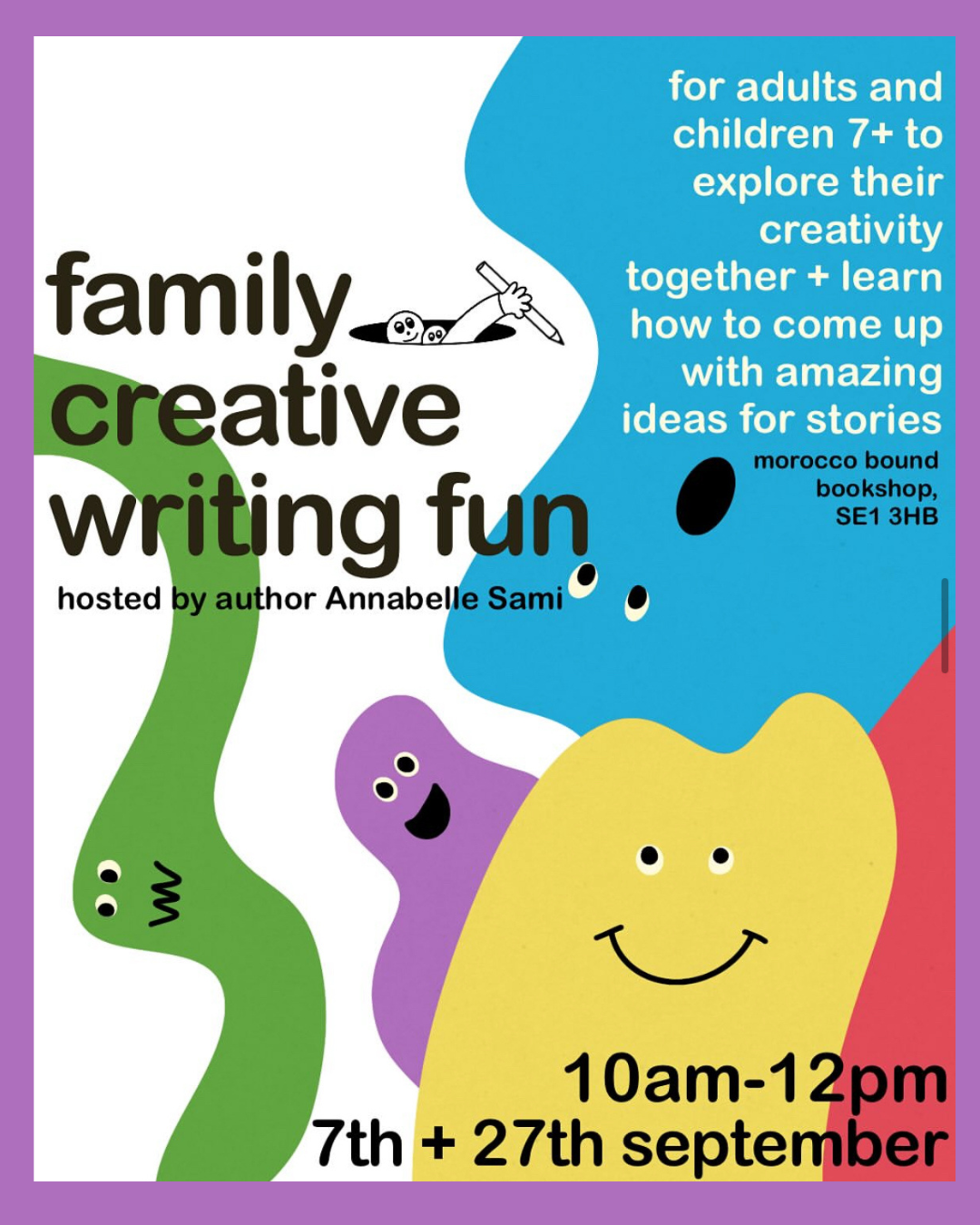 In this creative family workshop, author Annabelle Sami will encourage adults and children to explore their creativity together, learning how games and play can be used to come up with amazing ideas for stories. Expect lots of fun, creative writing & imagination-ing with your loved ones!